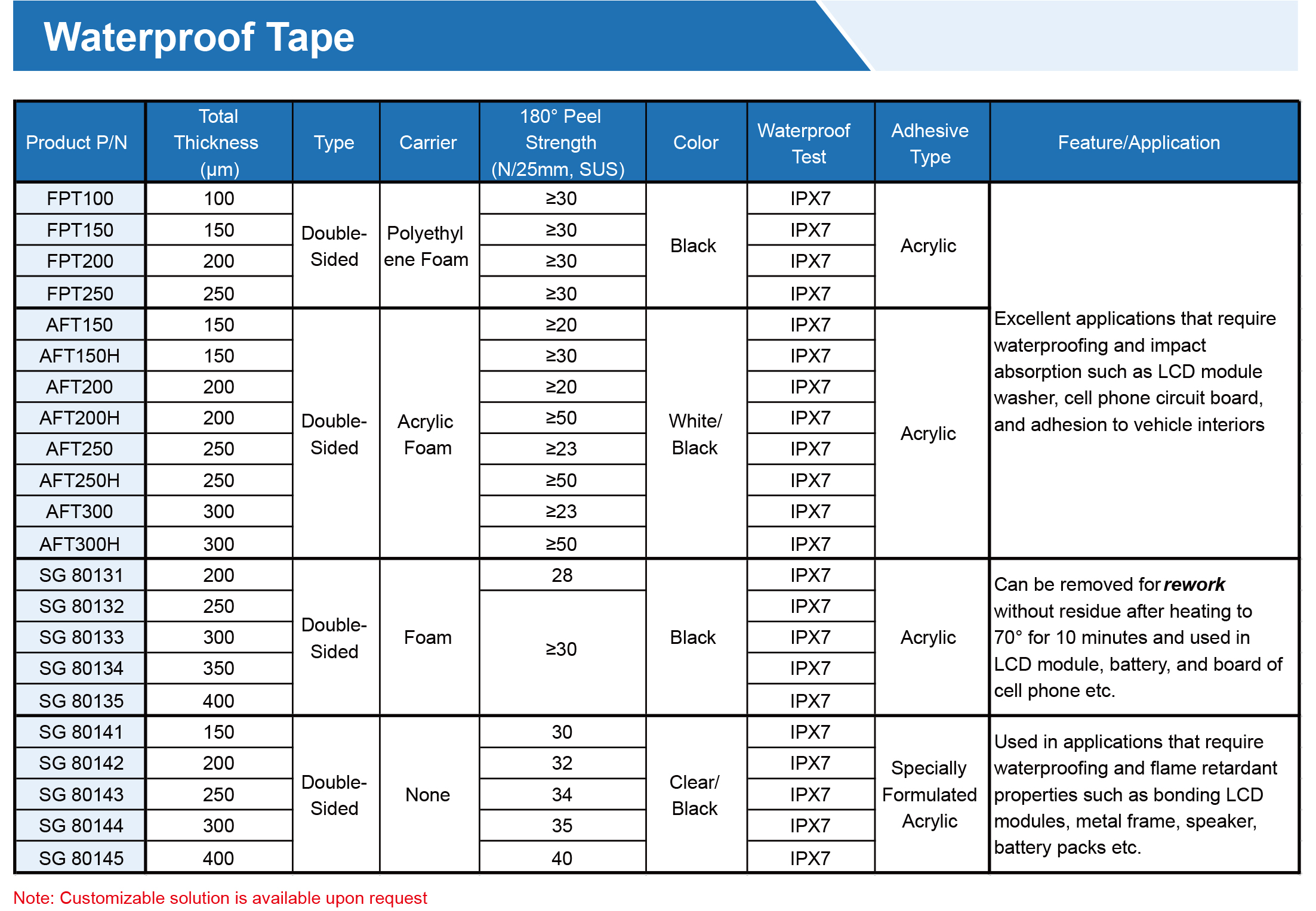 提供各種膠帶,由PET、無紡布、泡沫、涂有丙烯酸、硅樹脂、橡膠、熱熔、熱轉(zhuǎn)化粘合劑的PI基材制成。可提供各種寬度、長度和釋放襯墊,以滿足特定需求,專為工業(yè)、商業(yè)和家庭應(yīng)用的特殊環(huán)境而設(shè)計。