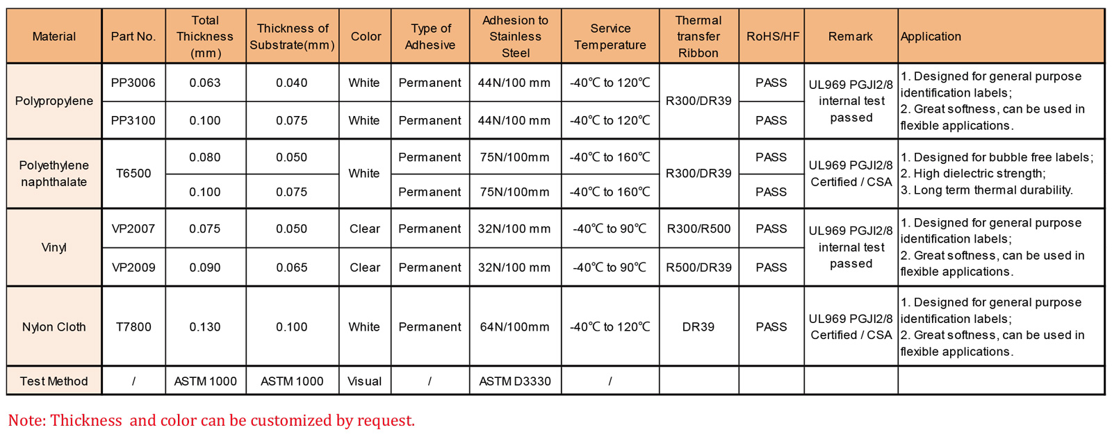首頁 > 產品 > 印刷 / 模切 > 標簽 > 聚丙烯、聚丙烯萘酸酯、乙烯基、尼龍