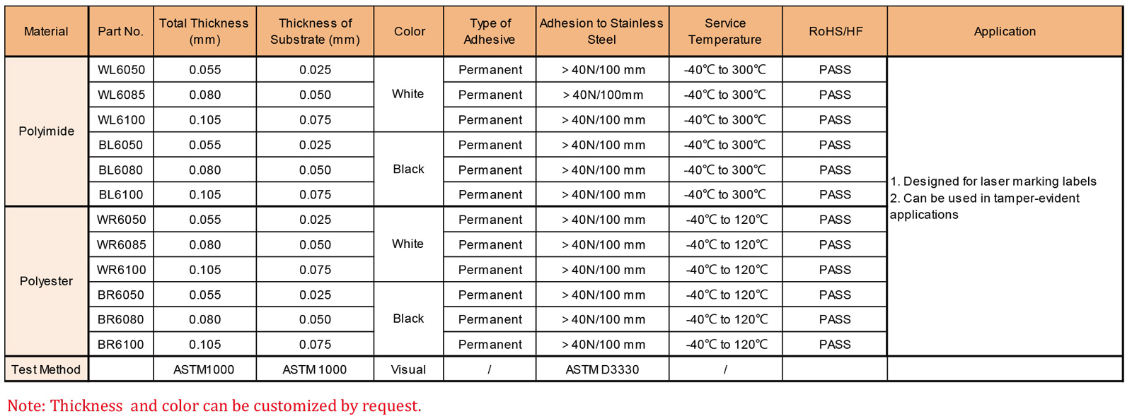 ● 專為使用激光打標設備生產(chǎn)標簽而設計